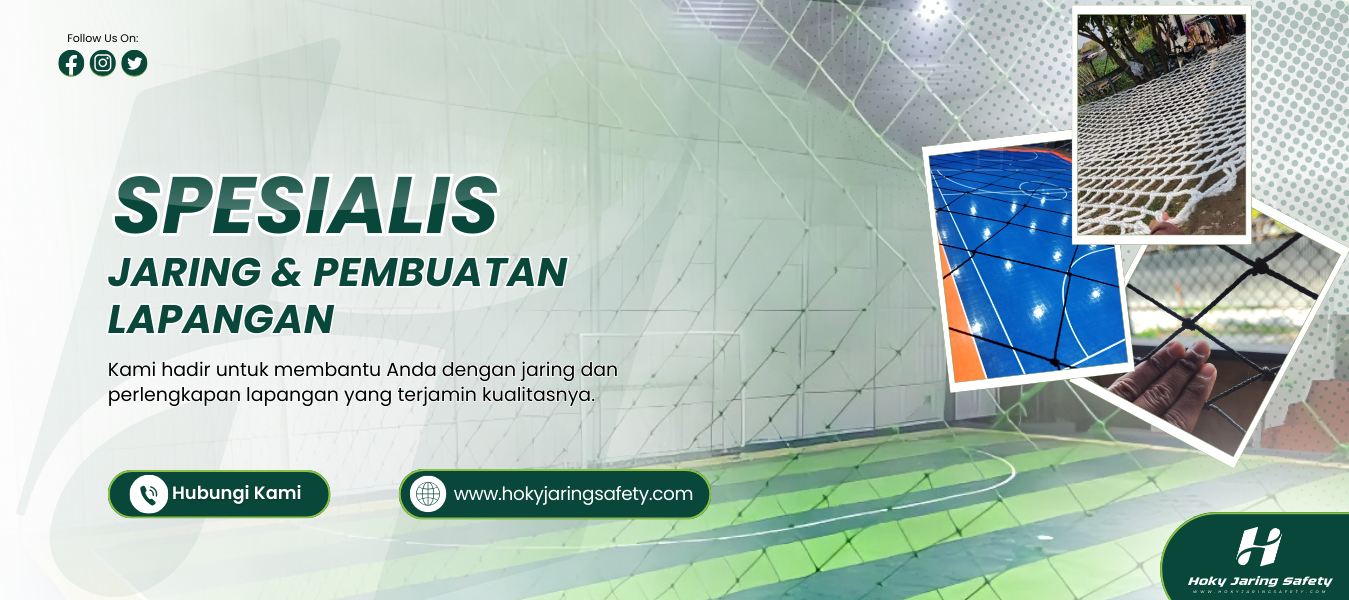Dengan pengalaman dan komitmen pada kualitas, Hoky Jaring Safety menjadi pilihan tepat untuk sekolah, klub olahraga, perusahaan, dan proyek konstruksi. Temukan produk dan layanan terbaik untuk mendukung keamanan dan performa lapangan Anda bersama kami.