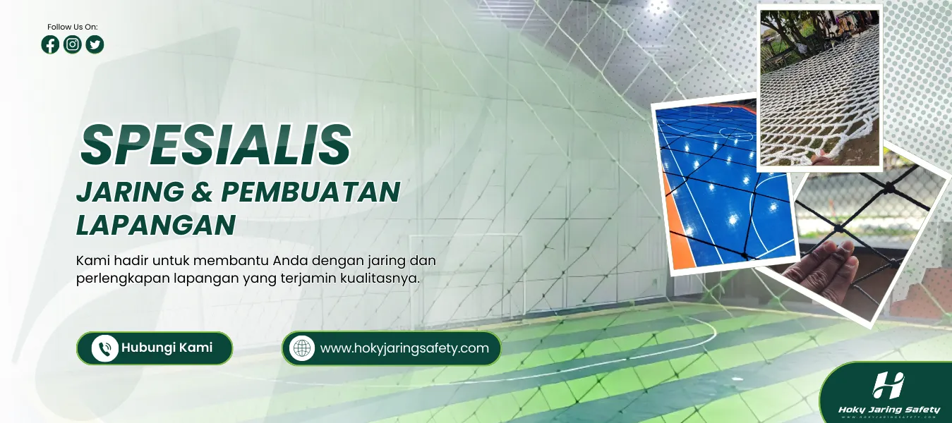 Dengan pengalaman dan komitmen pada kualitas, Hoky Jaring Safety menjadi pilihan tepat untuk sekolah, klub olahraga, perusahaan, dan proyek konstruksi. Temukan produk dan layanan terbaik untuk mendukung keamanan dan performa lapangan Anda bersama kami.